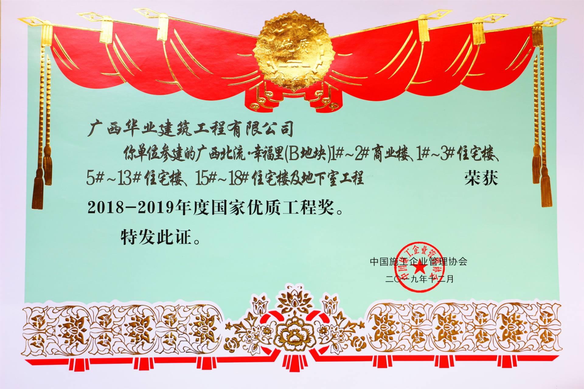 項(xiàng)目榮譽(yù):2019年全區(qū)建筑施工安全標(biāo)準(zhǔn)化觀摩項(xiàng)目 -